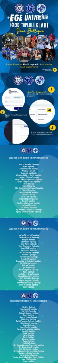 Üniversitemiz Sağlık Kültür ve Spor Daire Başkanlığına bağlı olarak faaliyetlerini sürdüren güncel topluluklarımıza ait afişler için tıklayınız.